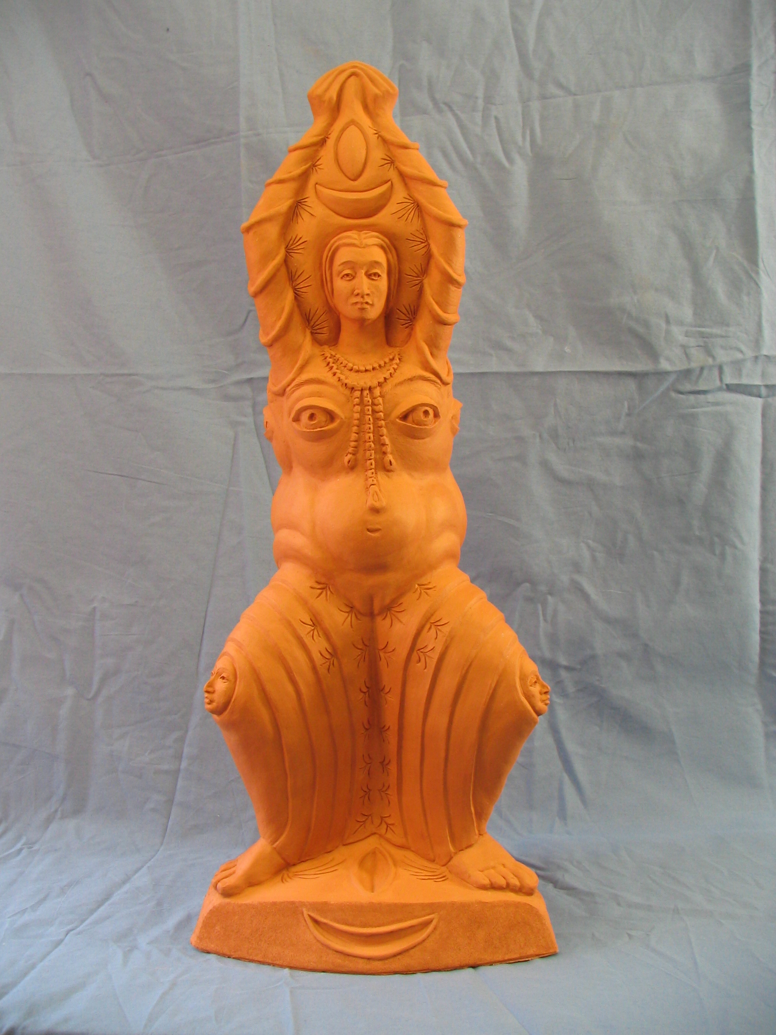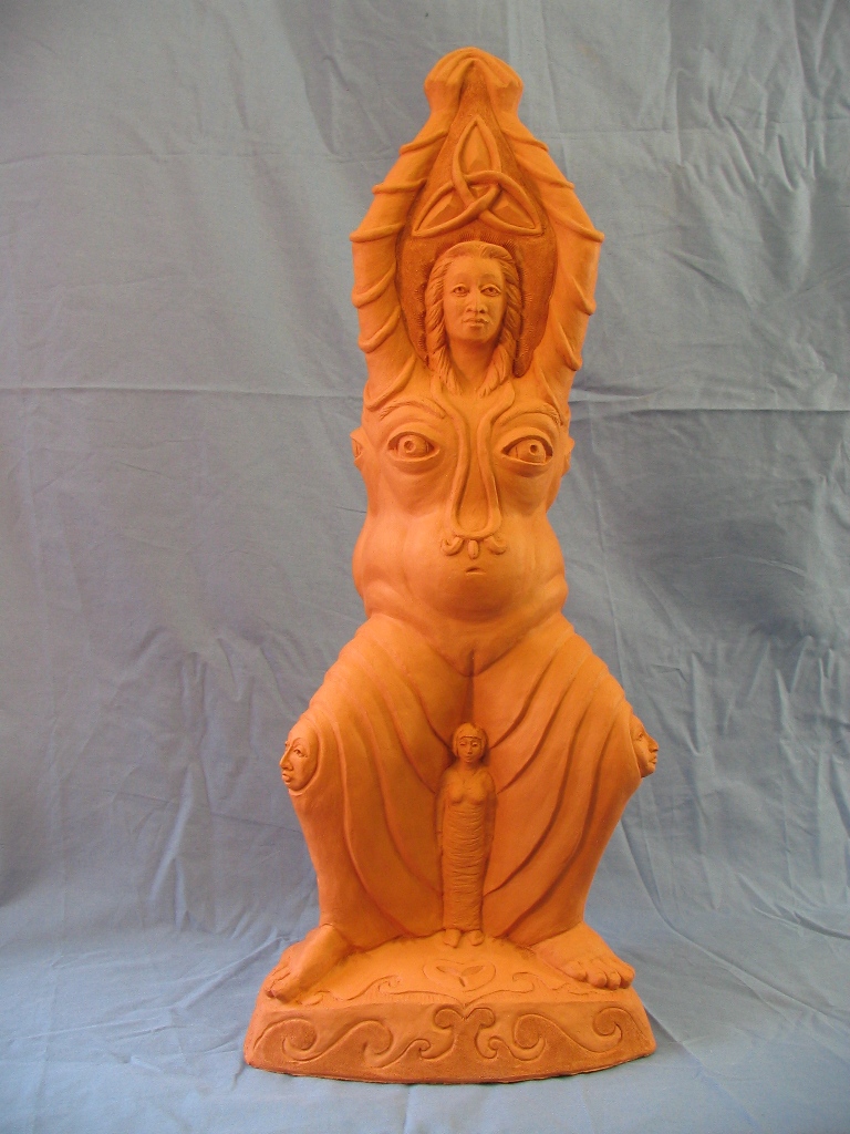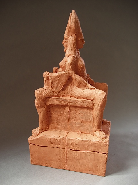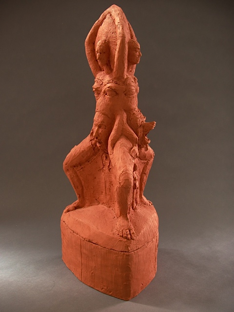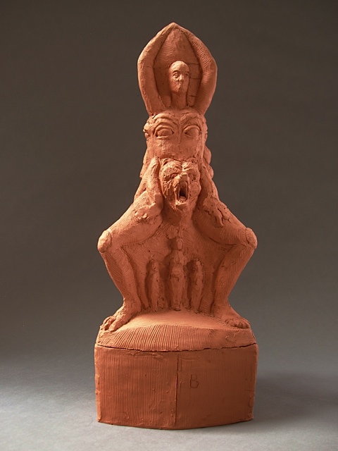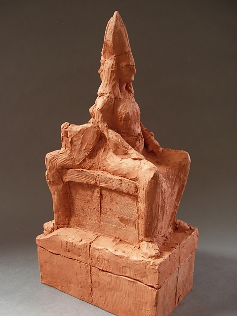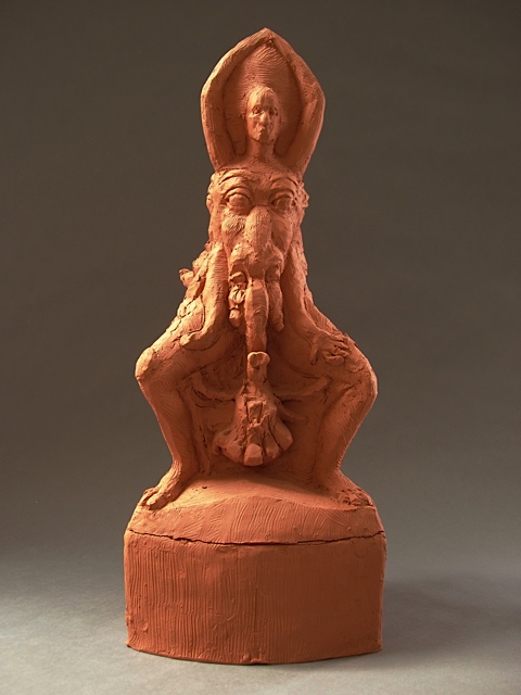 The piece below is the 2nd sculpture Cydra was working on in the last months of her life. I have chosen to call it Pope Joan Unfinished (2013), as it appears that Cydra was returning to depict this important figure in her work. Including the above referenced Pope Joan with Miter Hats, Ganesh and Baubo (2005) and Untitled 2013, this was