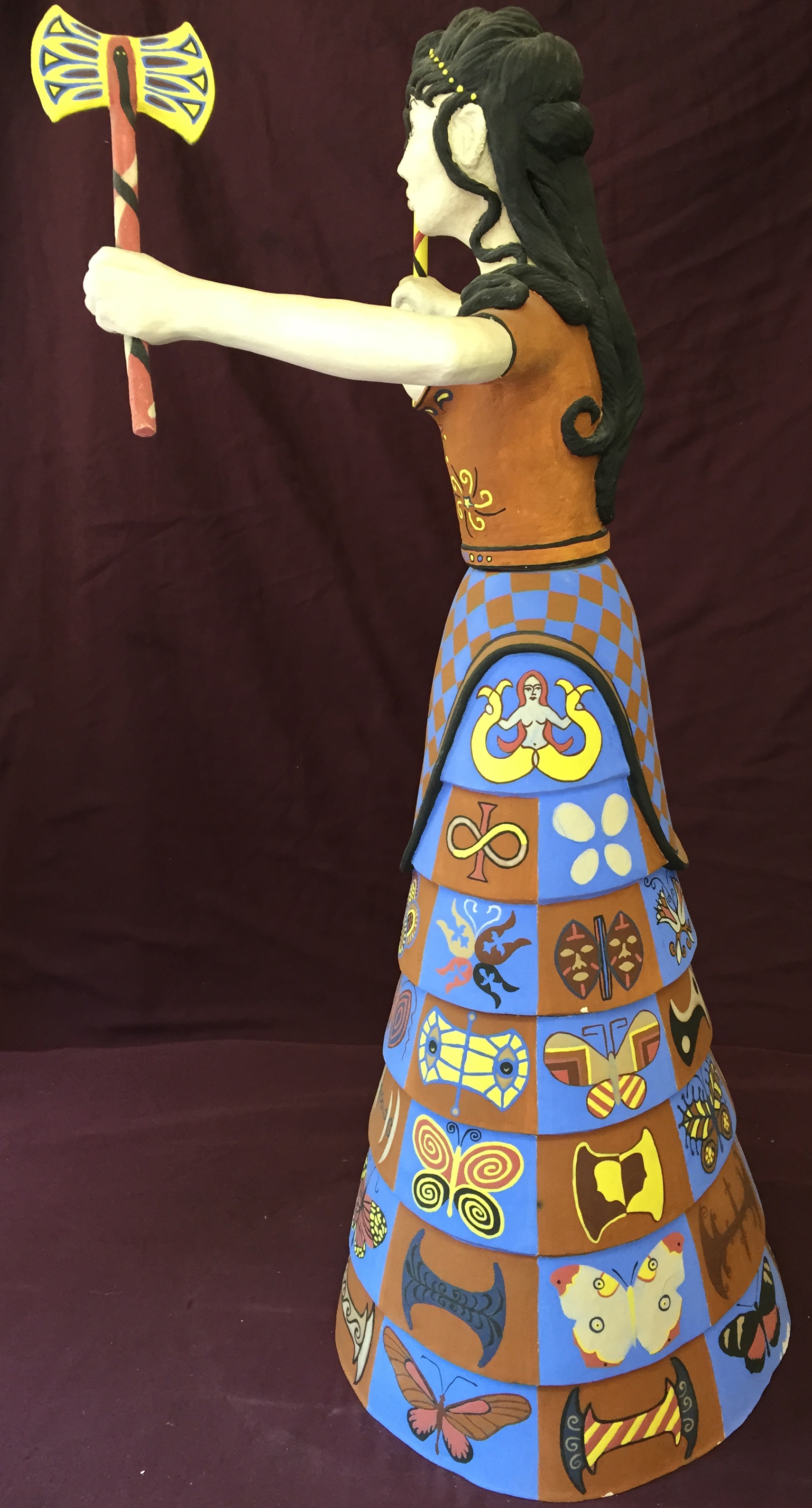 checks on Goddess #3's skirt I have painted a butterfly, and on each